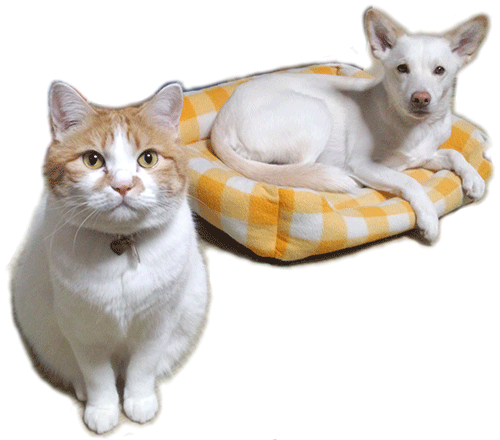 現在、元保護猫ジブリール&元保護犬エルマーナが一緒に生活